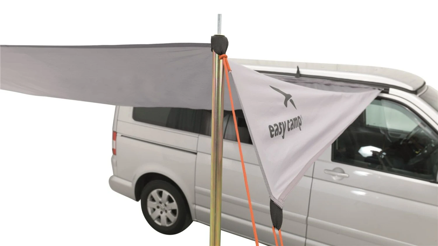 The Easy Camp motor tour canopy is a great accessory for your motorhome, the poled shelter provides shade and shelter to the entrance of your van, with plenty of standing height underneath. The twin steel pole design fits into the brass eyelets of the shelter making pitching extremely fast and simple to pitch, whilst providing a solid shelter pitched tight with guylines. Its small pack size and lightweight nature make it a great addition to any camping holiday to give more shelter outdoors. Perfect for tourers, who need quick shelter from the elements, and small pack size, with a low weight (2.4kg)
