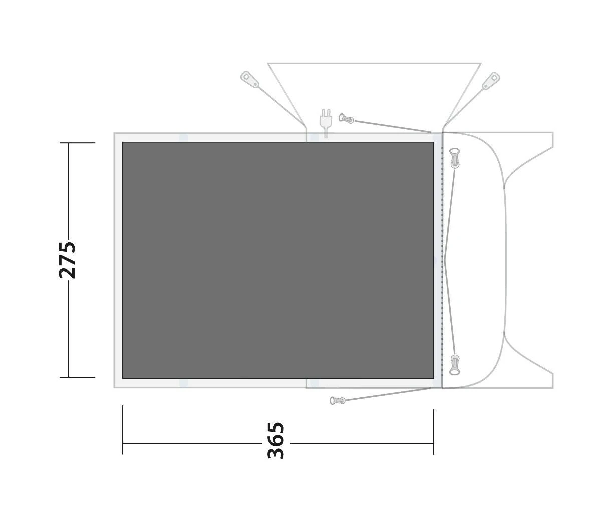 A layer of waterproof tarpaulin, measured to fit the dimensions of the awning. It is protected from the ground, when using a footprint – which is ideal for harder-standing pitches.