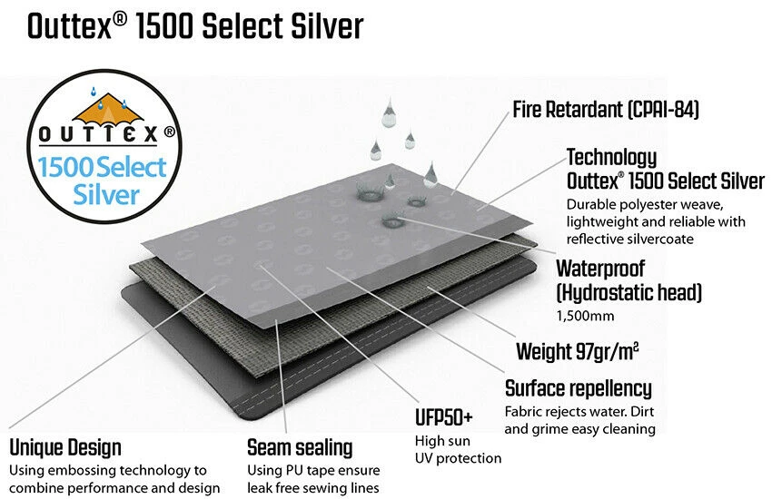 New for 2023 is the Outwell Event Lounge XL offering a freestanding 4 metre square outside shaded area with a strong steel frame, perfect for socialising with standing headroom it provides protection from the elements