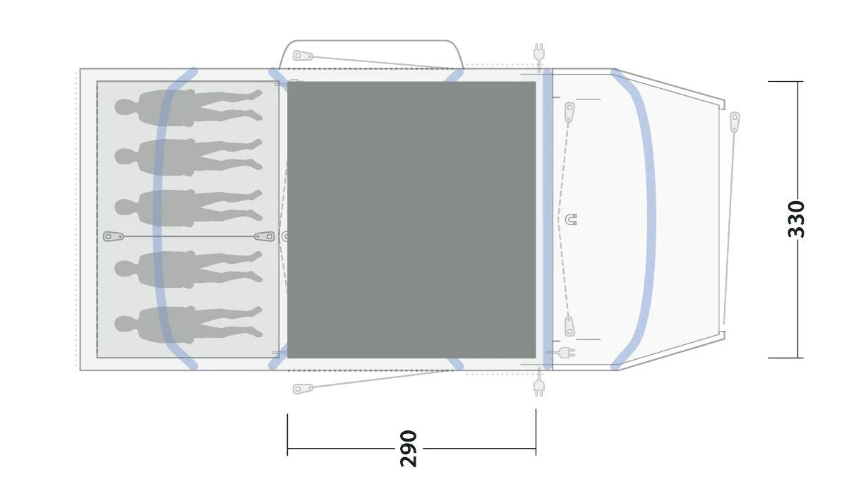A soft-feel carpet, purposely sized to fit the Outwell Jacksondale 5PA Tent, measuring 330 * 290cm and covering the sewn-in groundsheet. It is PVC backed and offers an insulating layer to the living space. Perfect for the early or later season campers, who might need something to increase the warmth of the tent in the evening time.