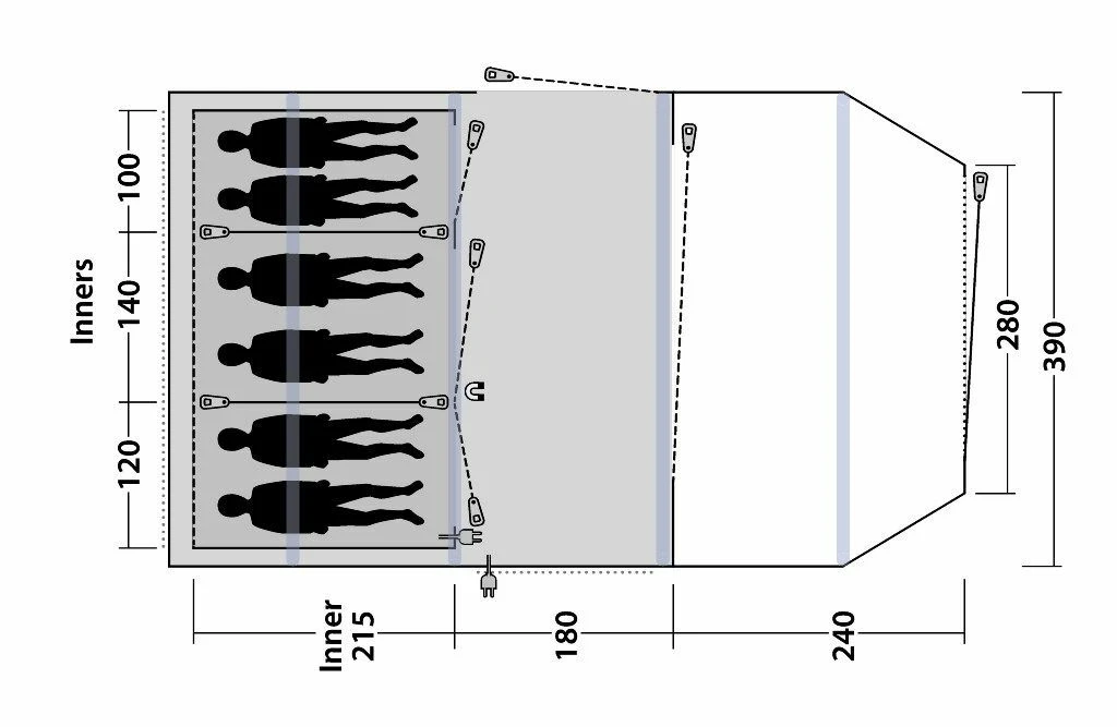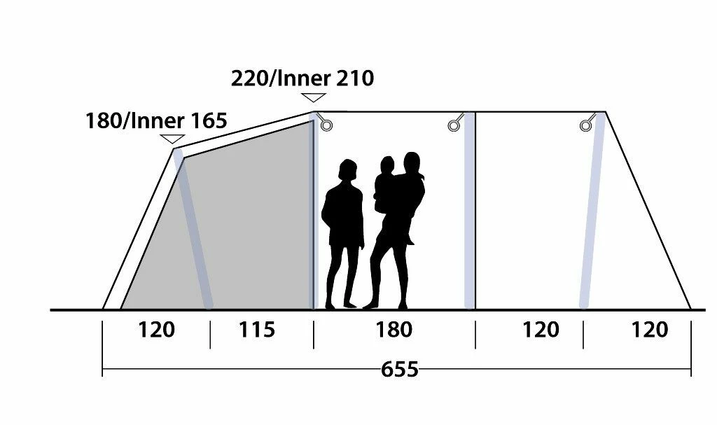 The Outwell Parkdale 6PA is a tent ideal for four to six people, such as families – the inflatable design allows for quick, simple pitching. A spacious design offers a three-zone design, with ample living space, sleeping space and a darkened Premier bedroom with mesh ventilation and with two zipped dividers. With quick and quiet access between the outer and inner zones. The Parkdale has great flexibility, with pre-angled air tubes creating excellent standing height throughout, with generous living space. With plentiful windows which allow in plenty of light.