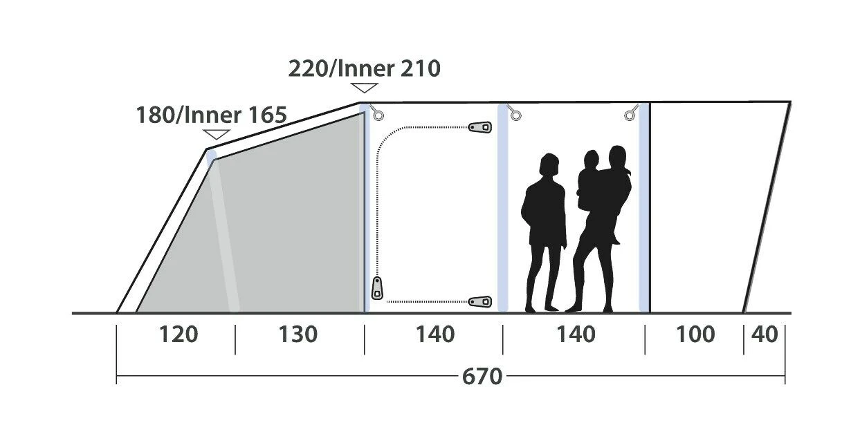 The Outwell Springville 5SA offers a durable, reliable tent , suitable for up to five people. Featuring the new Outtex 6000 RS Endurance fabric, which is a Ripstop, 250 Denier polyester, with four times the strength of a regular tent fabric. Further to this, the Springville has a large open front canopy, and a large living space, with Ambassador bedroom inners.