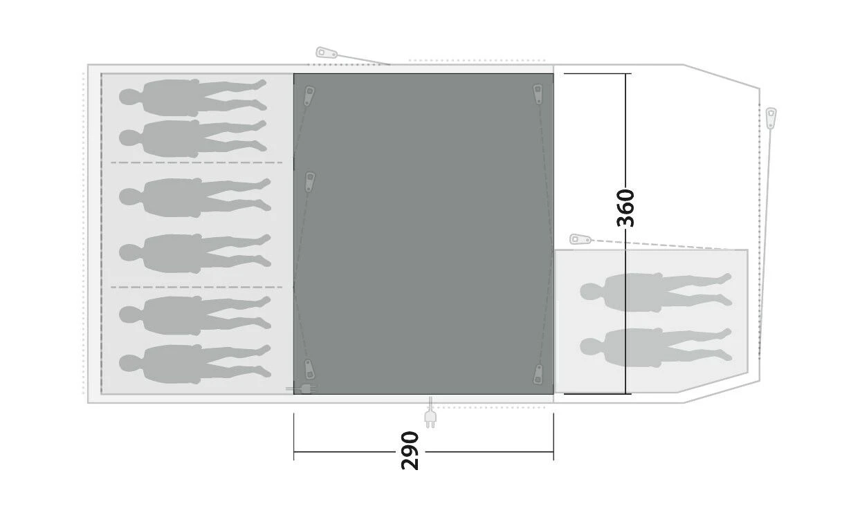 If comfort is an important part of the camping equation, the matching flat woven carpet is an optional accessory, designed to increase the comfort, warmth and insulation of the Outwell Winwood 8 Tent.