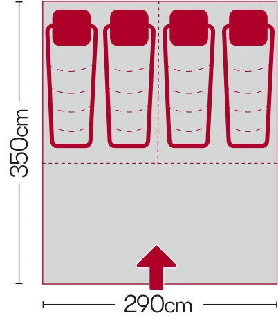 Guy ropes and smooth, high quality sliders that are long lasting and make tensioning the ropes easy, a triple layered fully sewn in, hard wearing PVC groundsheet becomes an integral part of it by adding strength and stability