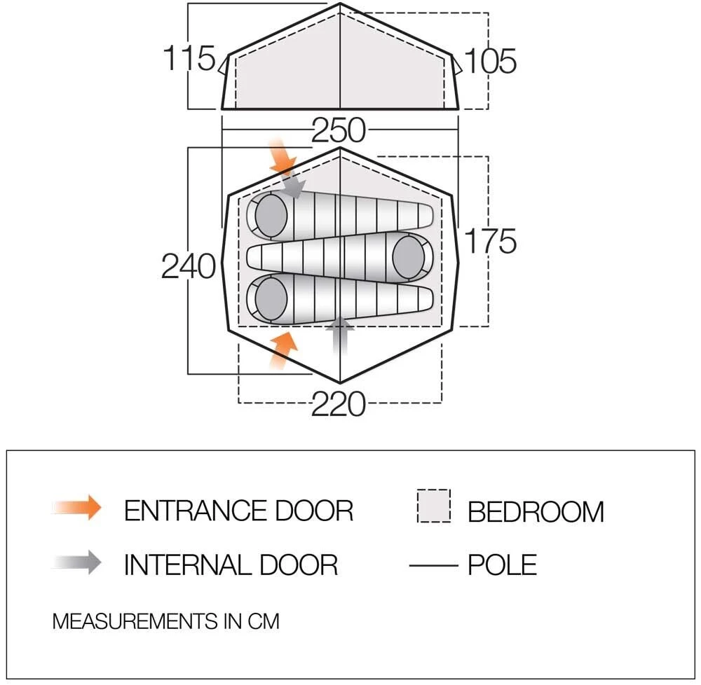 The Vango Nevis 300 tent is a compact, three-person tent with a lightweight design, fantastic head height, and a simple tunnel structure to pitch, which can be erected within 5 minutes. The Nevis has Powerlite Alloy poles to ensure it remains lightweight, with an overall weight of 2.5kg, whilst offering fantastic strength of the structure. Featuring Vango’s patented Tension Band System II to help stabilise the tent in windier, adverse weather conditions.